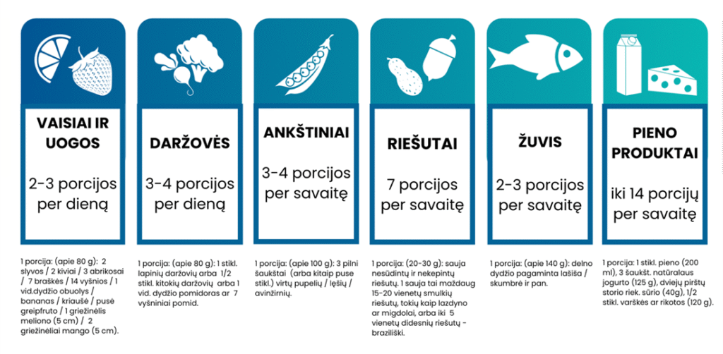 Rekomenduojamų maisto produktų suvartojimas porcijomis